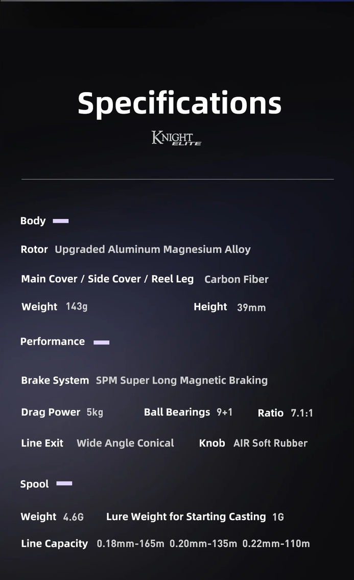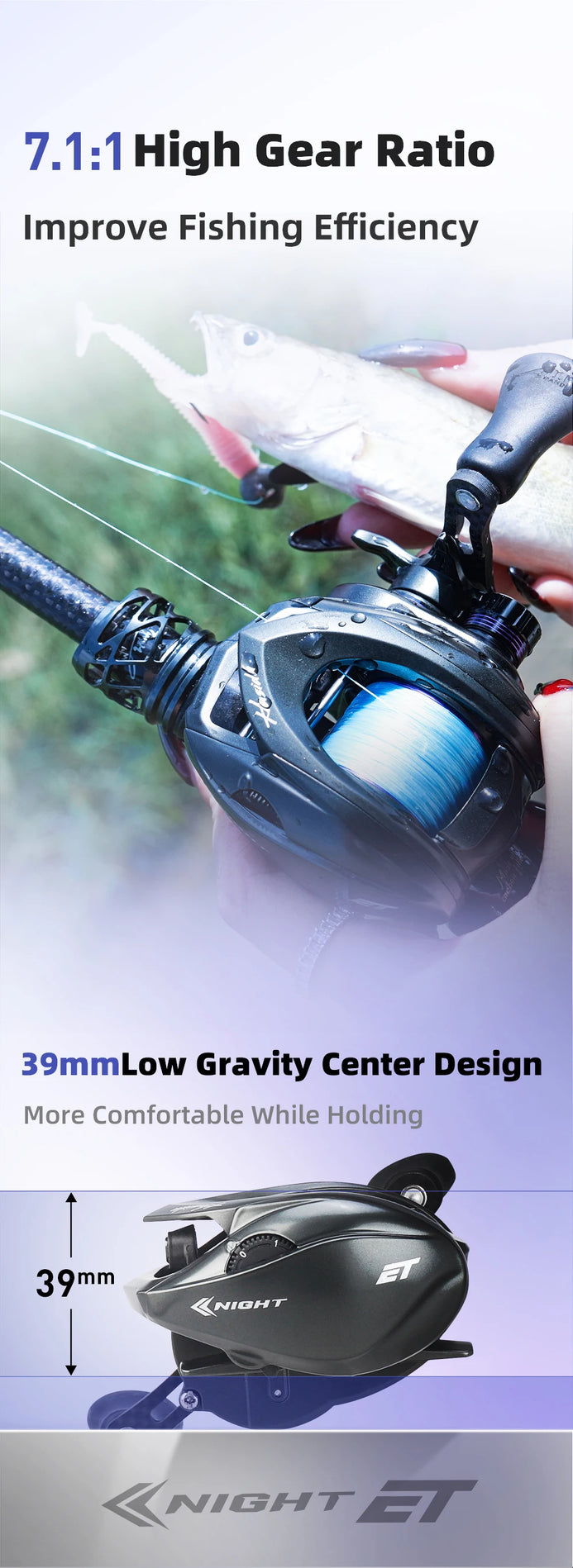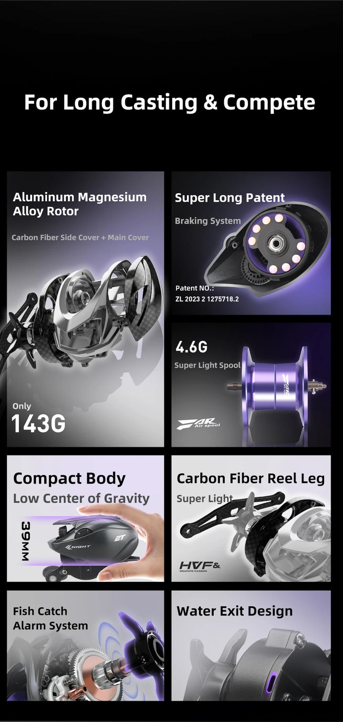 Master precision casting with the HiStar Black Knight Elite—engineered for anglers who demand control and power. This lightweight powerhouse weighs just 143g, reducing fatigue during extended sessions while delivering a commanding 5KG drag force to handle aggressive strikes and hard-fighting fish. The advanced magnetic brake system fine-tunes your cast accuracy, eliminating backlashes and maximizing distance. With a lightning-fast 7.1:1 gear ratio, you'll retrieve line with authority and set the hook before your target escapes. Built for serious anglers ready to elevate their game, this reel combines cutting-edge technology with battle-tested reliability.