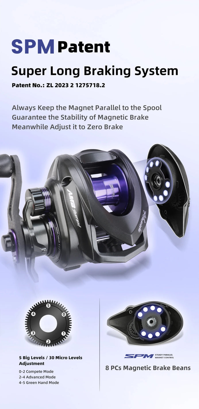 7. Super-long braking system with 5-stage/30-micro-adjustment & 8-magnet array