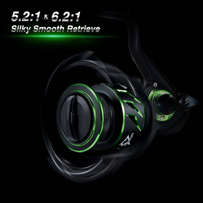 Multiple Retrieves - The Piscifun Viper X spinning reel features a lightning fast 6.2:1 gear ratio as well as a buttery smooth 5.2:1 in our 500,1000 and 5000 model. These 2 gear ratios are the perfect combination, the high speed retrieve helps every angler battle the strong, fast runs of the biggest fish and the moderate speed is perfect for finessing in your next trophy.