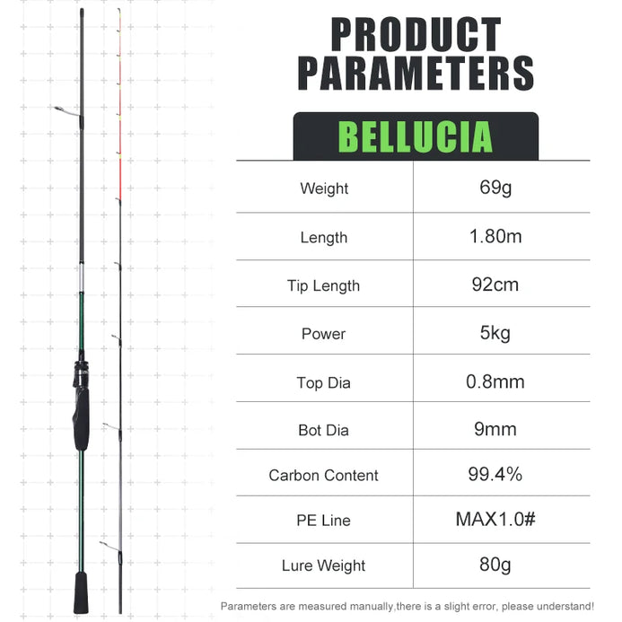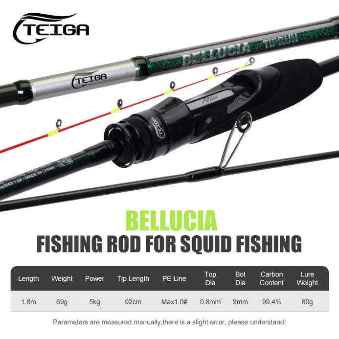TEIGA BELLUCIA TIPRUN Fishing Rod Solid Carbon Fiber Tip 180cm Spinning Fishing Lure Rod For Squid Fishing