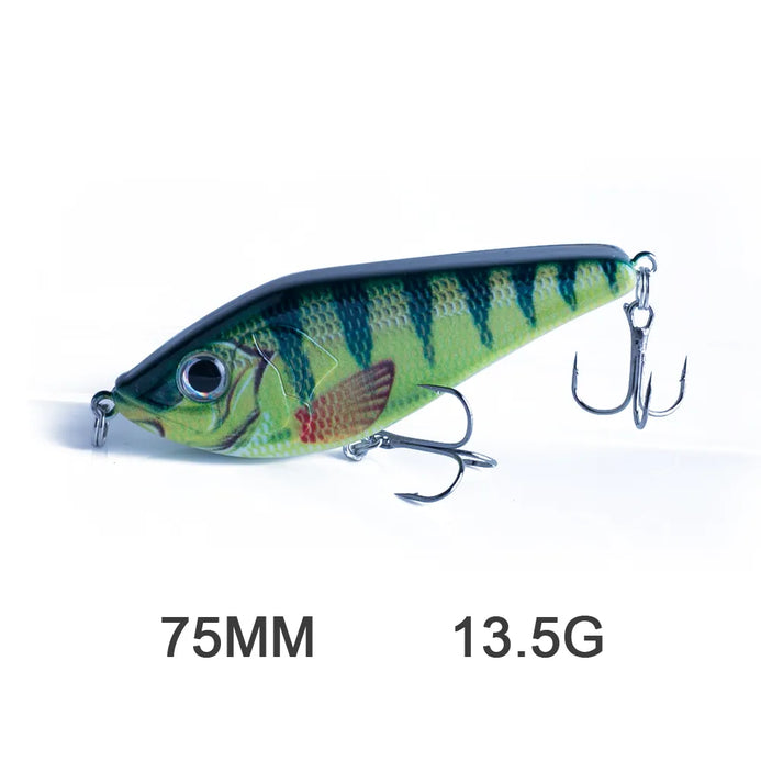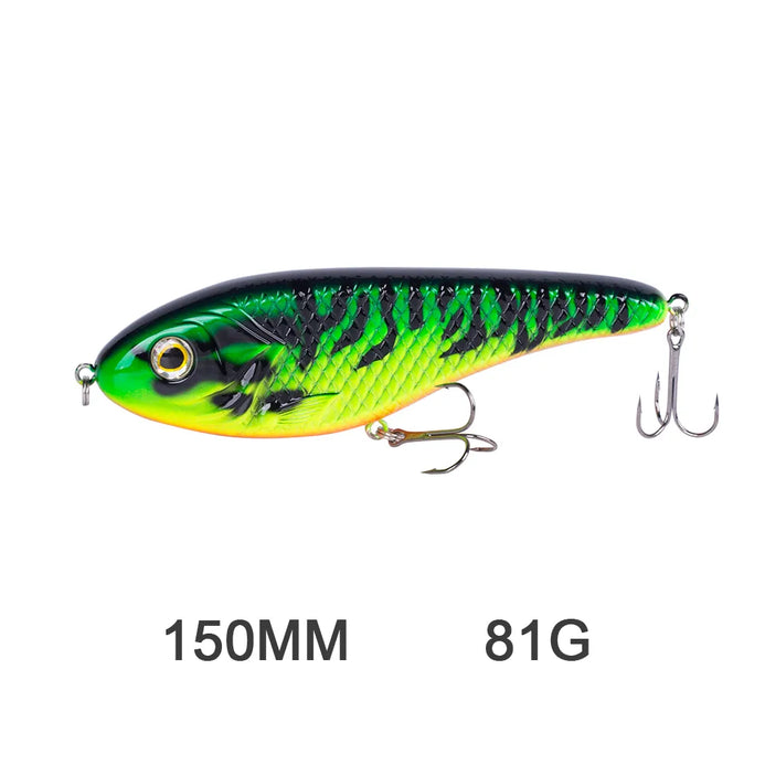 3) Overall Structure: The Internal Structure Uses The Steel Ball To Balance The Conduction. When You Take The Line, The Ball In The Body Is Transmitted To Other Parts And Produces Sound, Which Can Drive The Fish To Chase. The Shape Is Made Of Carbon Steel With 2 Super Sharp Treble Hooks To Ensure That The Fish Will Not Escape. Those Jerkbaits Are Ideal For Capturing Sea And Freshwater Species.
